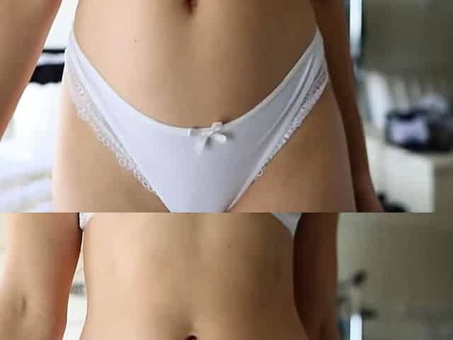 Slutty blonda in pinkish lace masturbates with her fresh dildo