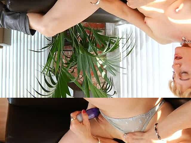 Blonde and brunett lesbian babes toying