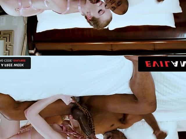 Petite vixen Sassee Cassee takes on a massive cock with stockings on!