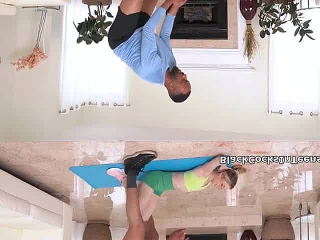 Ebony teen catches his stepmom sucking his trainer's ramrod!