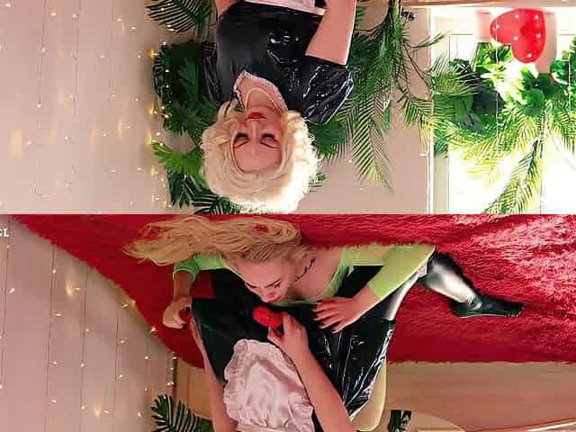 Sexy Maid Angel in PVC Costume Playing With Yielding Blond and Do Kinky Training