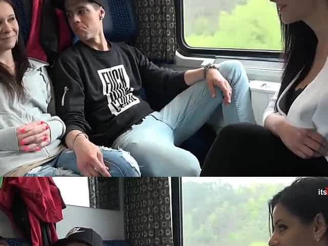 Upskirt shots and hardcore fucking on a public train