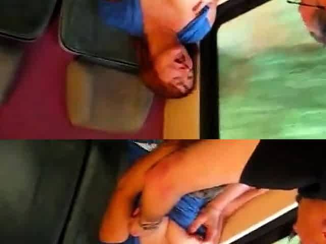 Redhead teen fingered and threesome on a public train