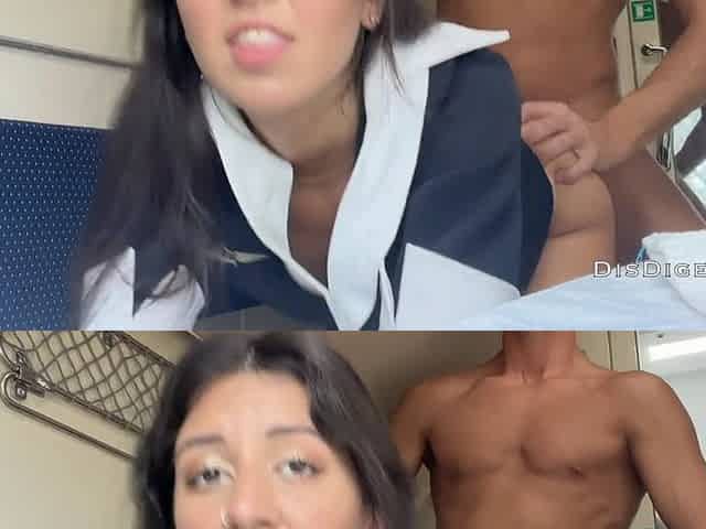 Naughty Brunette Student Seduces Her Boyfriend To Cum On Train 5 Min
