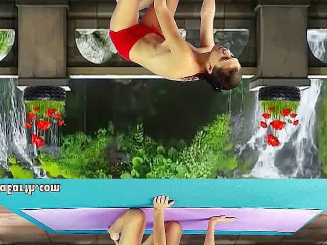 Spreads her legs in training! Hard sex in a condom