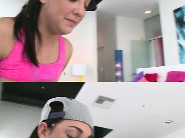 Anal training for cute tiny teen brunette on webcam show liv