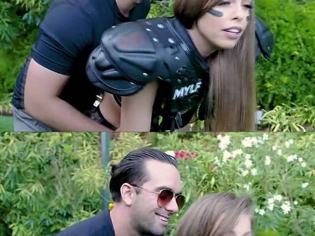 MILF rides football coach in the garden after training