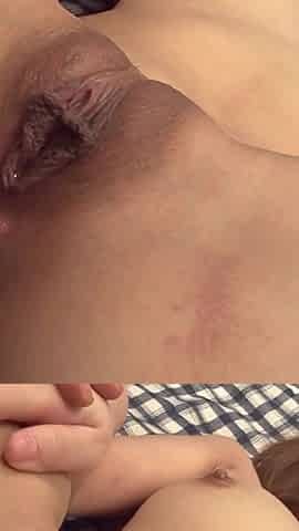 Large Booty teen eighteen is stretching and GROANING in daybed