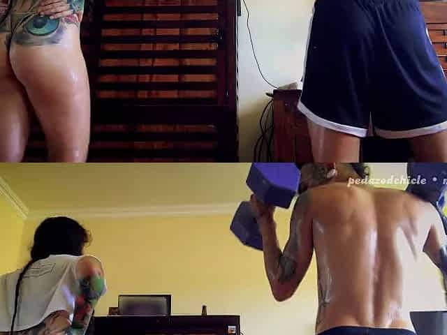 Training my stepsisters sweaty ass got me horny and she gave me a sloppy blowjob