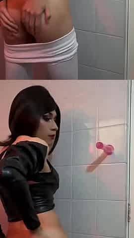 Bathroom Solo Ladyboy Cumshot