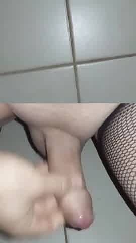 Pretty Asian ladyboy does a sexy dance before peeing in the toilet