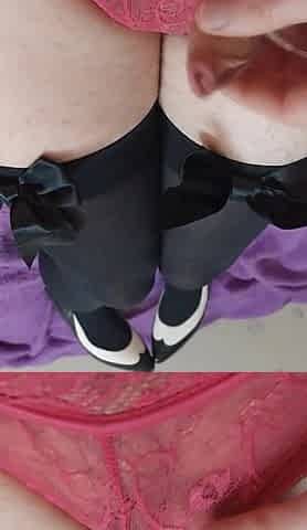Sissy Trans in Red Shoots Her Sissy Juice