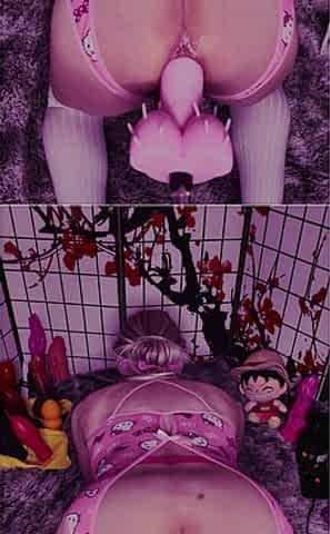 Pink Pussy Femboy Anal Gape with Buttplug and Huge Fat Dildo