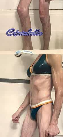Crossdresser Cdmichell Wearing Blue Two Piece Swimsuit