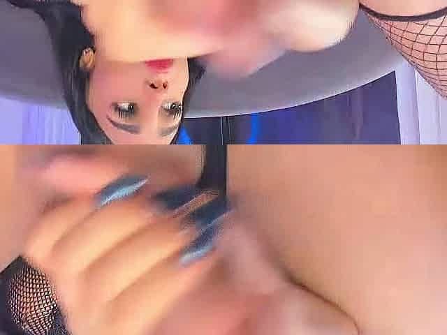 Cute Tgirl with small tits jack off her big cock on cam