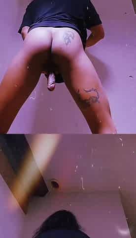 Horny Tgirl Masturbate and Ride Dildo Cum