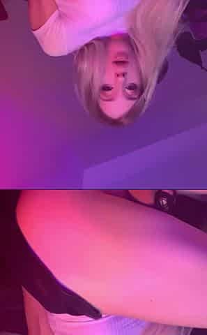Cute Blonde Shemale with Natural Big Tits Jerking Her Thick Cock