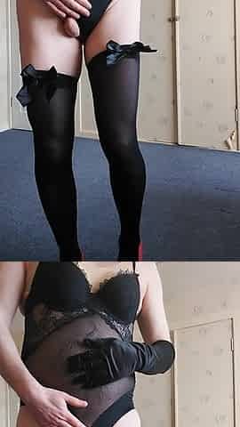 Black Bodysuit with Withe Creeamy Cum