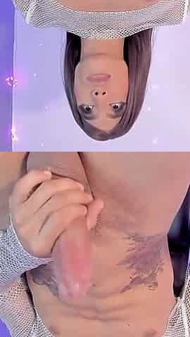 cute femboy in fishnets teases and cums in hand - close up cum play