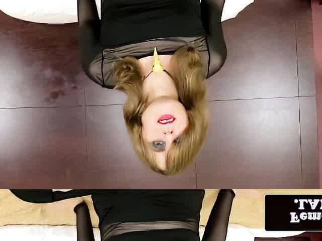 Masked Shemale in Leather Bodysuit Lying Down and Fucking Her Oiled Ass with BBC Dildo