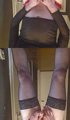 Sexy Crossdresser Kellycd2022 in Red Pvc Outfit and Fishnet Stockings and Heels
