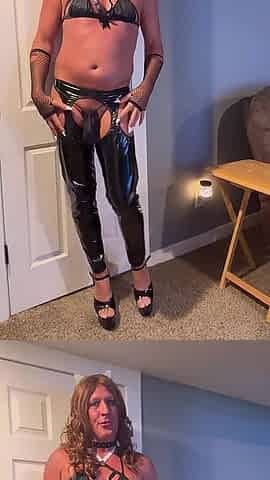 Amateur Crossdresser Kellycd2022 Sexy MILF Masturbating My Big Sissy Gurl Cock and Cuming Outdoors in Black Pvc