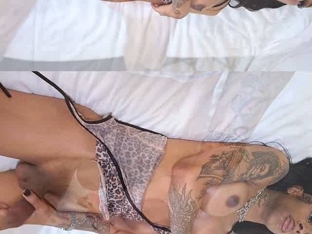 Hot TS Latin chick Ingrid Moreira seducing and tugjob