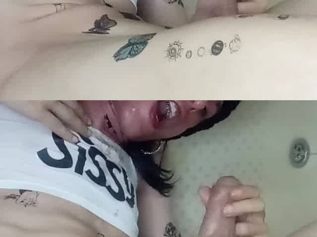 yielding and hawt teen trans cums from rubbing on dad's large knob