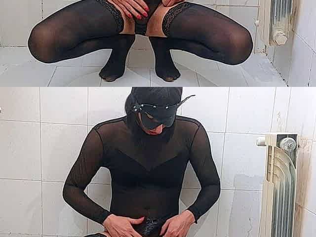 A Lewd Position in a Netted Costume. Orgasm with Vibration