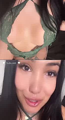 Busty petite ladyboy Nuun strips her black lingerie and