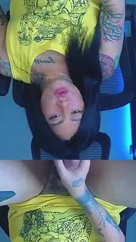 Tattoed ladyboy Minaty strips her black panties and jerks