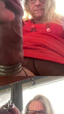 Redhead ladyboy in colorful panties strokes her hairy dick
