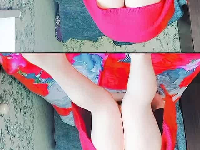 T-Girl sissy streamer jerks off solo in cute petticoat for cam audience