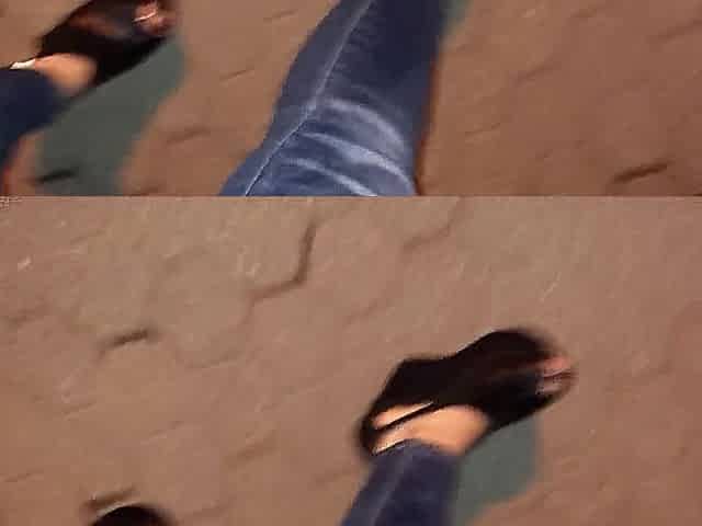 crossdresser tempts with her hawt feet in stripper shoes on the street