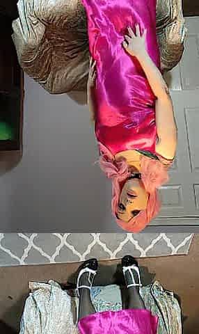 Sexy tv crossdresser ultra silky full length sexy pink satin