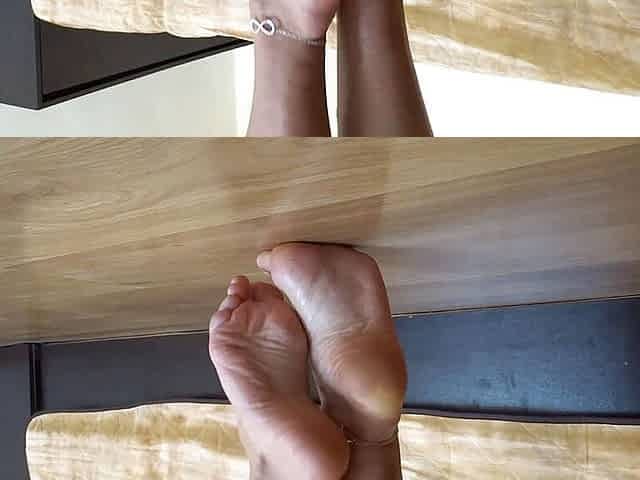 Playing with my oiled legs and sexy feet