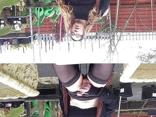 Crossdresser flashing in garden centre