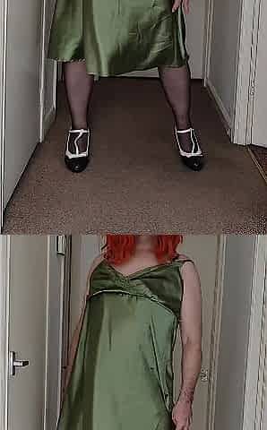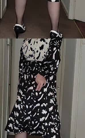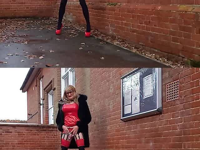 Crossdressed Outdoors caressing and feeling myself in my nylon hose leotard and mini petticoat