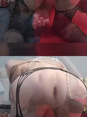 Sissy ladyboy crossdresser in stockings masturbating and cum