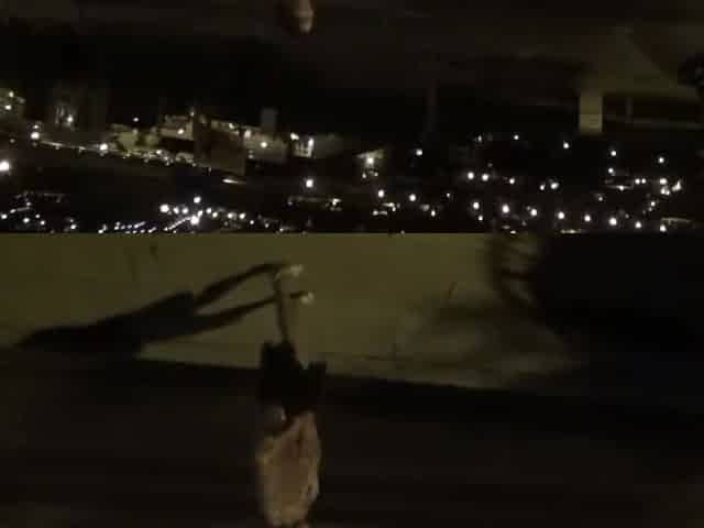 Crossdresser flashing on a highway bridge