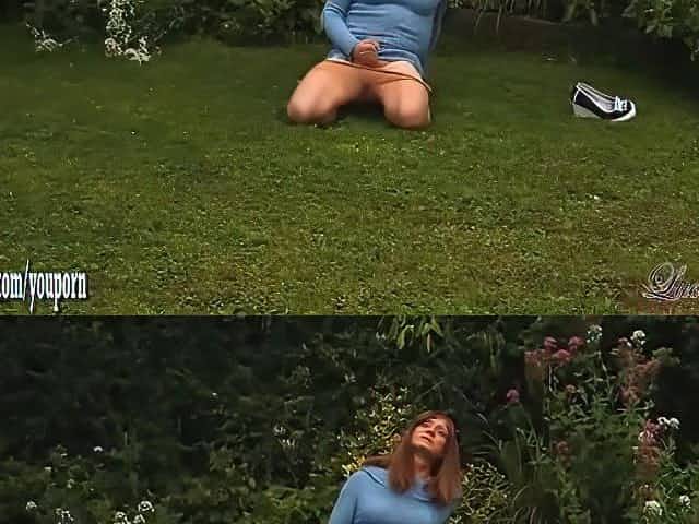 Concupiscent crossdresser whore has large garden jack off and climax wearing hawt nylon hose