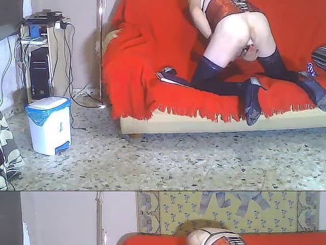 High heel boots, crossdresser, huge dildo
