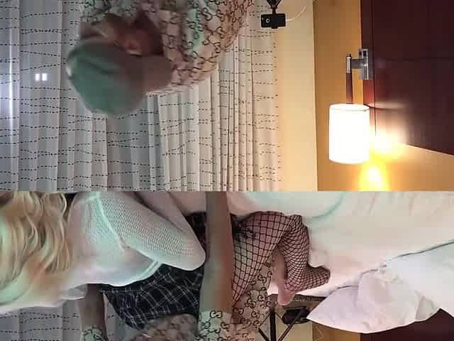Amateur Crossdresser in Stocking Heels Skirt Seduces Husband to Her Room Gives Blowjob, but Hubby Keeps Talking About MILF Wild