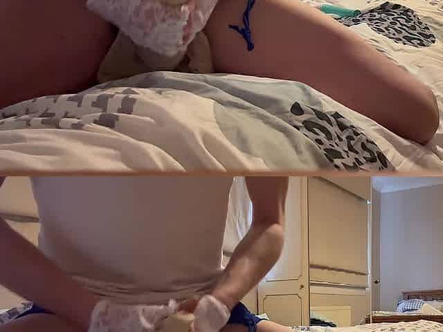 Part 2 of Sexy Crossdresser Trans Female Teases with Fake Pussy in Lingerie and Stockings