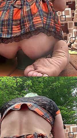 Crossdresser outside mini petticoat large bazookas