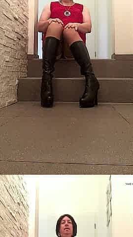 Sissy Slut Michelle Evening Self Satisfaction in Red Wet Lingerie