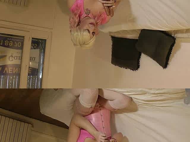 Crossdresser Orlandi480 Posing in Pink Crotchless Pants and Riding Huge Dildo