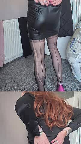 Shemale Crossdresser Black Dress Stockings Hot Cock