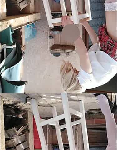 Crossdresser in Skirt on Chair Outdoor Shows Her Ass and Cock