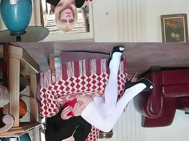 Sexy Blonde Shemale Crossdresser Sissy Crossdresser White Stockings and High Heels